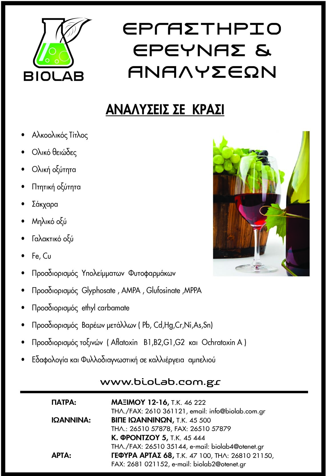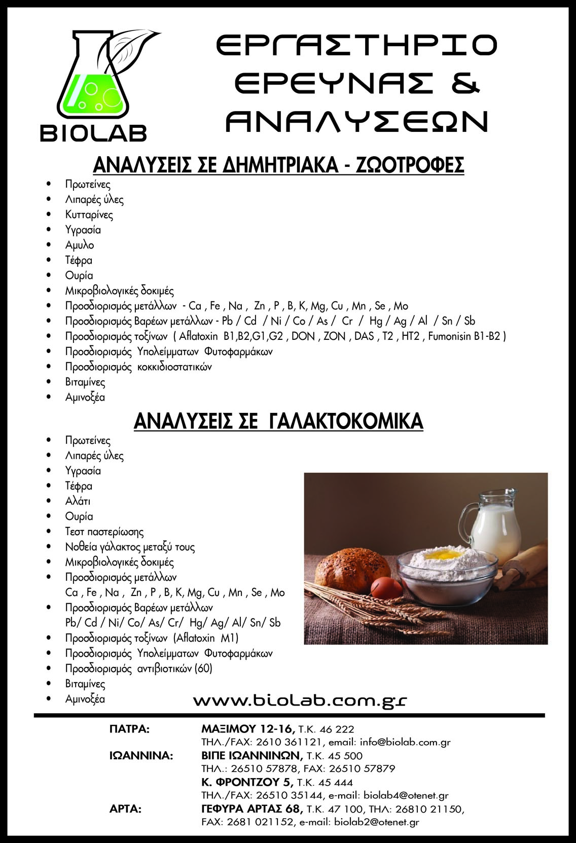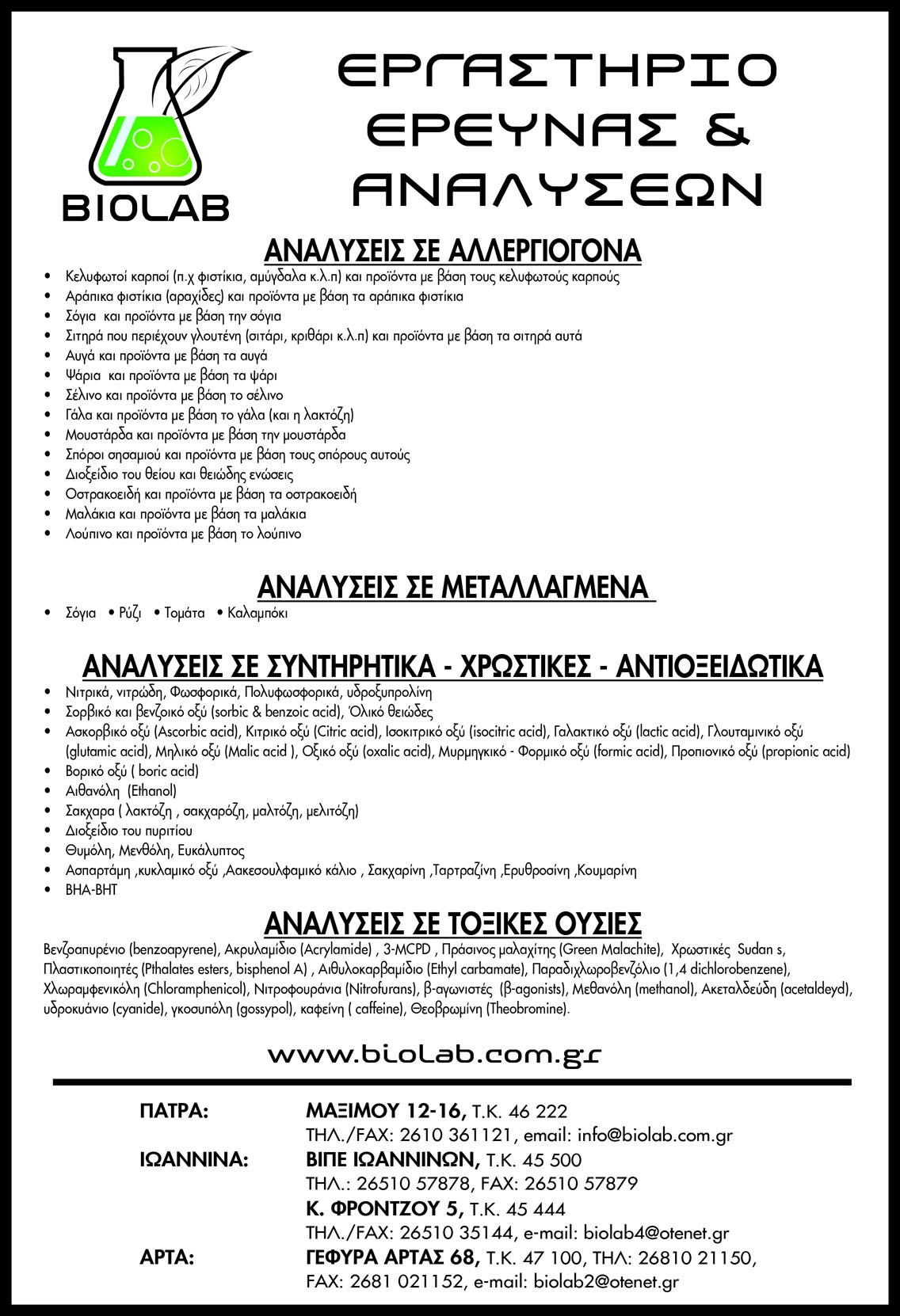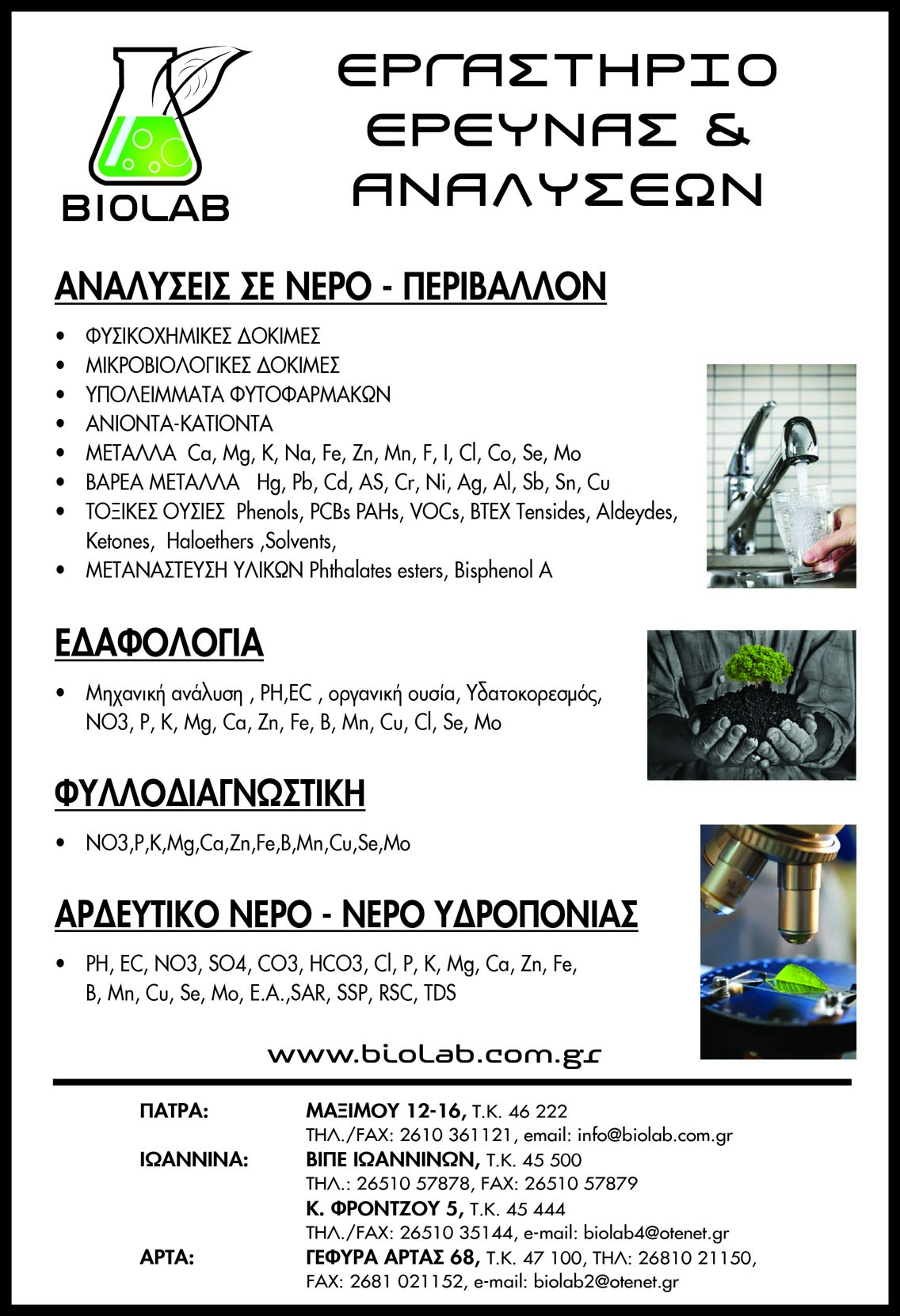 - Αναλύσεις σε νερό και περιβαλλοντικά δείγματα , βιοαέριο , βιομάζα